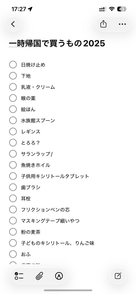 次の一時帰国では、買い物に追われず、家族とゆっくり過ごせる時間を作りましょう。