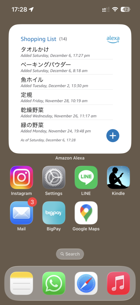 メモ帳はスマホが手元にないときはメモできず忘れてしまったりするので、アレクサの音声認識でリスト化してもらっています。
